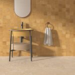 Owing to the client’s roots, influences of tropical architecture play out throughout the house. The influences can be seen in the façade with the usage of a slant roof and wherever possible materials have been kept exposed. The material palette largely comprises of exposed red bricks, concrete finish, wood, and yellow Kota stone, which in union create a medley that is earthy, rustic, warm, and embracing.